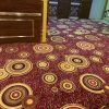 Mẫu thảm cuộn WS0173 với gam màu đỏ trầu và họa tiết vòng tròn màu vàng đồng tâm tinh tế, đặc biệt phù hợp cho các không gian trung tâm hội nghị, tạo nên không gian trang trí ấm áp và trang nhã.