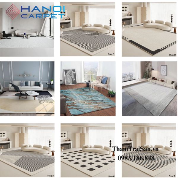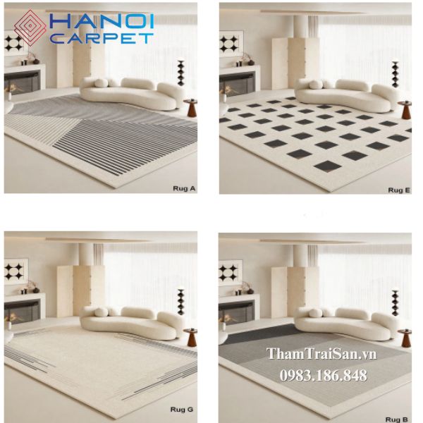 Thảm sở hữu các họa tiết mềm mại, tinh tế, tạo cảm giác nhẹ nhàng và sang trọng cho không gian. Những đường nét uốn lượn hoặc hình khối hiện đại giúp căn phòng trở nên sinh động hơn mà không gây rối mắt.