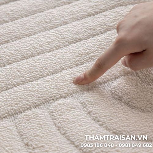 Điểm nổi bật đầu tiên của sản phẩm chính là thiết kế họa tiết dập nổi hiện đại trên bề mặt thảm. Những đường vân được tạo hình mềm mại mang đến hiệu ứng thị giác tinh tế, giúp thảm trở thành điểm nhấn nổi bật trong không gian.