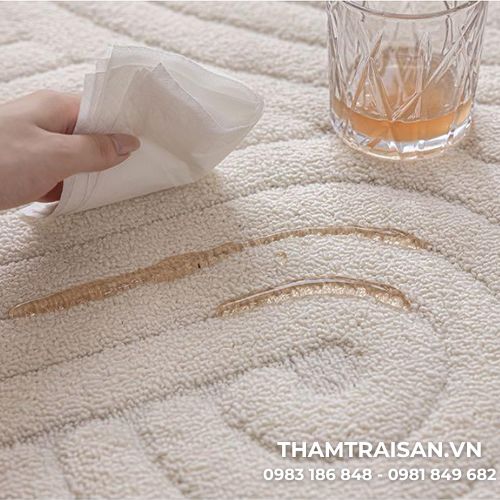 Bên cạnh đó, thảm còn dễ vệ sinh và hạn chế bám bẩn. Khi nước hoặc đồ uống vô tình đổ lên thảm, người dùng có thể lau sạch nhanh chóng bằng khăn khô hoặc khăn giấy.