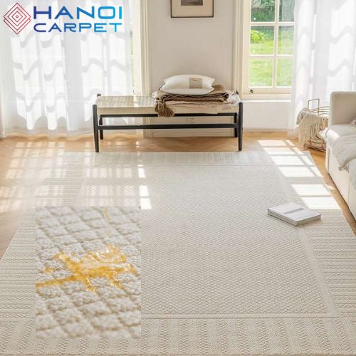 Điểm đặc biệt của sản phẩm nằm ở cấu trúc sợi thảm và lớp bề mặt được xử lý để nước không dễ dàng thấm xuống bên dưới. Khi có nước đổ lên thảm, chất lỏng thường trượt nhẹ trên bề mặt thay vì thấm sâu vào sợi. Điều này giúp người dùng dễ dàng lau khô nhanh chóng, tránh tích tụ độ ẩm – một nguyên nhân phổ biến gây nấm mốc hoặc mùi khó chịu.