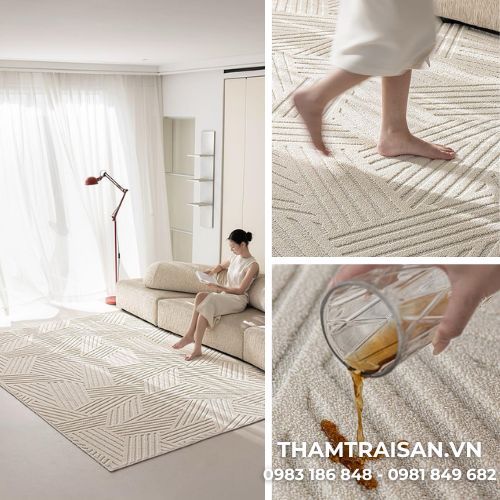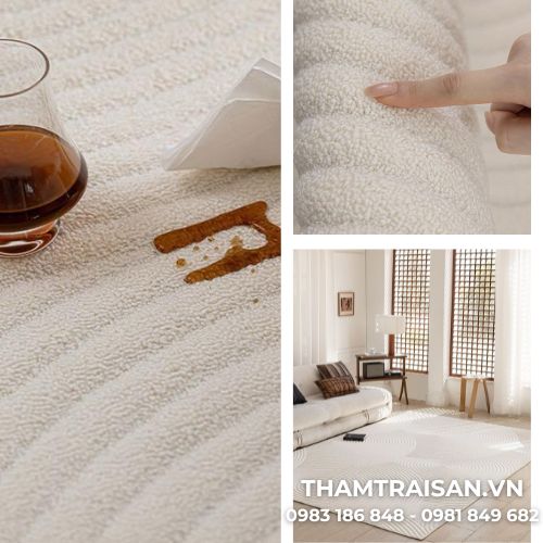 Ngoài ra, chất liệu này còn giúp việc vệ sinh thảm trở nên đơn giản hơn, chỉ cần lau chùi hoặc xả nước là có thể làm sạch nhanh chóng.