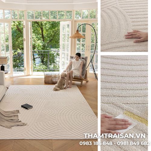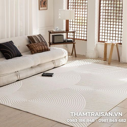Thảm có thể được đặt ở khu vực trung tâm phòng khách, gần ghế sofa hoặc lối đi, vừa đảm bảo an toàn vừa tăng tính thẩm mỹ cho không gian.