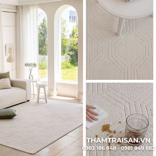 Thảm trải sàn trượt nước phòng khách là dòng thảm được thiết kế nhằm đáp ứng cả hai yếu tố: thẩm mỹ và an toàn. Với bề mặt dệt mềm mại cùng họa tiết dập nổi tinh tế, sản phẩm mang đến cảm giác nhẹ nhàng, hài hòa với nhiều phong cách nội thất khác nhau như minimalist, Scandinavian hoặc modern style.